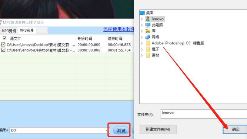 4.下一步文件就成功添加进来了,然后我们点击输出选项后面的浏览按钮可以更改合并之后的文件的储存位置。