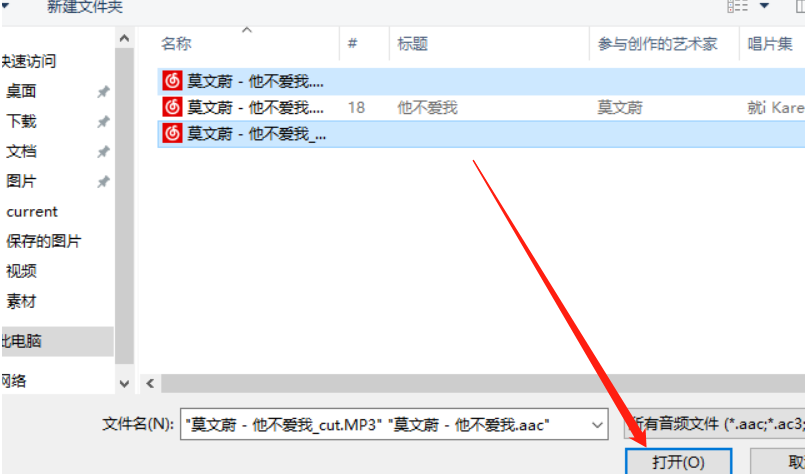 3.点击添加之后下一步就会出现一个选择文件的界面了,在这个界面中我们找到要合并的MP3文件选中之后点击打开按钮。