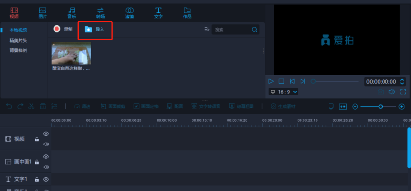 2.进入到编辑视频的功能界面之后,我们在界面中找到导入这个功能按钮,点击之后准备导入想要处理的视频文件。