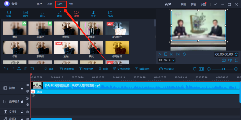 8.调整好模糊区域的大小宽度位置之后,我们在界面的左上方找到导出选项,点击之后可以将添加模糊滤镜的视频导出保存。