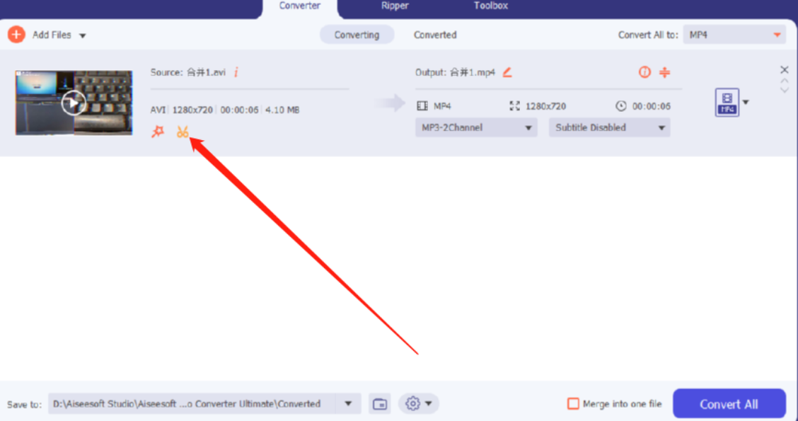 Aiseesoft Video Converter Ultimate怎么剪切视频文件?Aiseesoft Video Converter Ultimate是一款为用户提供了视频格式转换功能的软件,用户可以通过这款软件来转换电脑中视频文件的格式,将视频添加到软件界面之后还可以对视频进行一些简单的编辑,包括剪切、添加特效等操作。