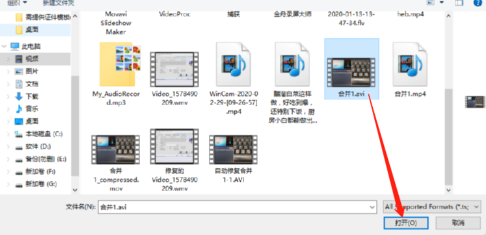 2.点击添加文件按钮之后在打开的选择文件界面中,我们选中想要剪切的视频文件之后点击右下角的打开按钮即可。