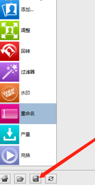 6.设置好自定义修改的名称之后,我们点击界面左下角的保存图标,如下图中所示,点击即可保存这个批处理操作。