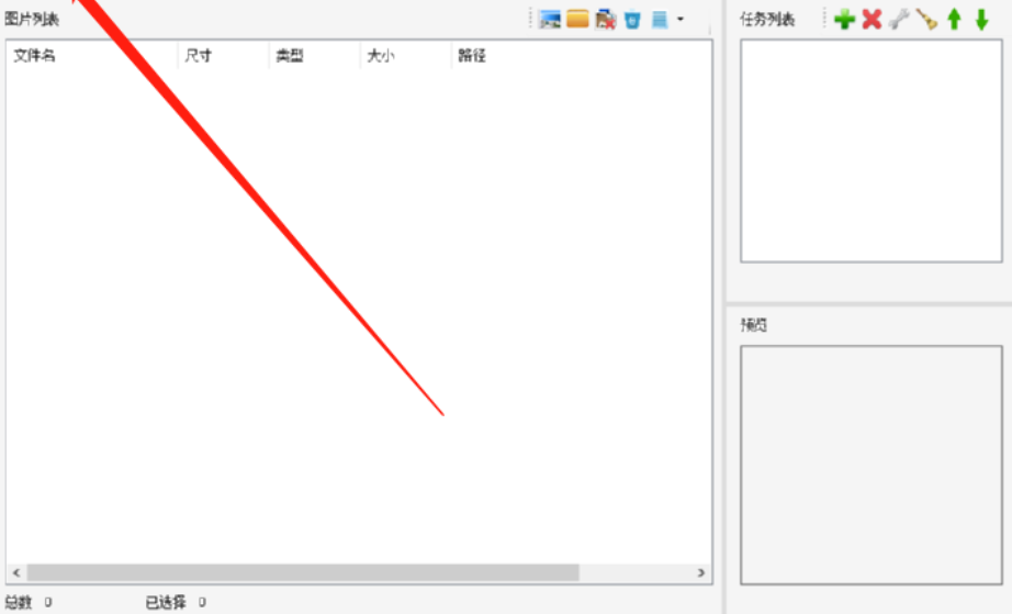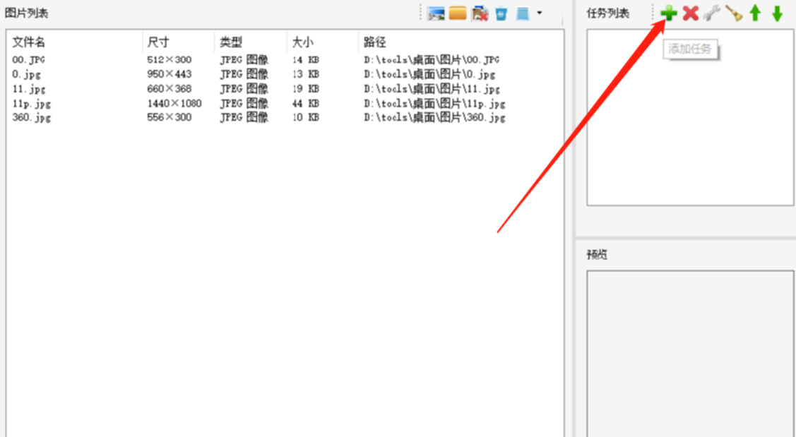 3.点击打开按钮之后,选择的图片就加载到软件界面中了,然后我们点击右边任务列表的加号即可选择添加转换任务。