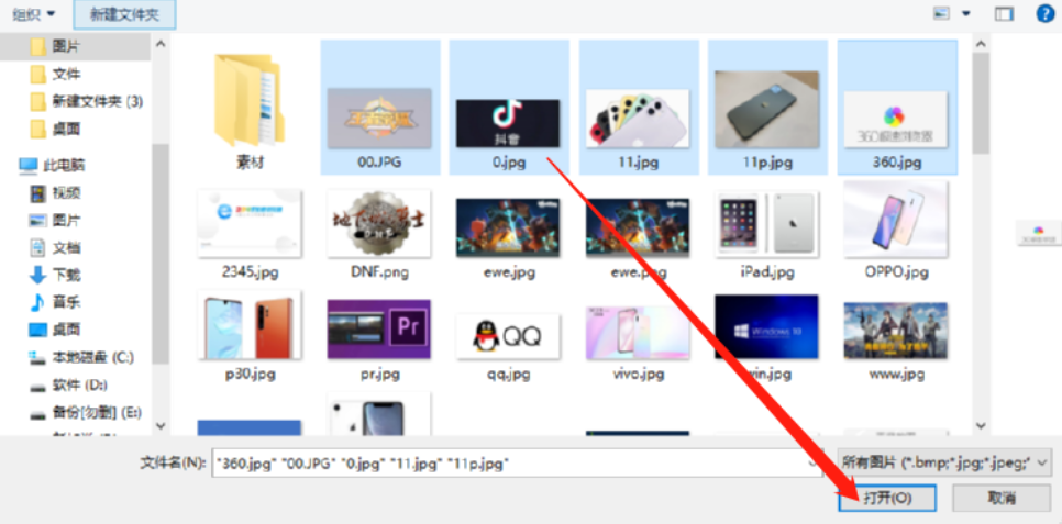 2.点击批量转换格式的图片之后,我们在出现的选择文件界面中,选中想要转换格式的图片之后点击右下角的打开按钮即可。