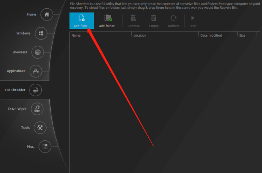 2.点击打开文件粉碎功能之后,我们在界面中点击Add files这个功能按钮,然后就可以添加想要粉碎的文件了。