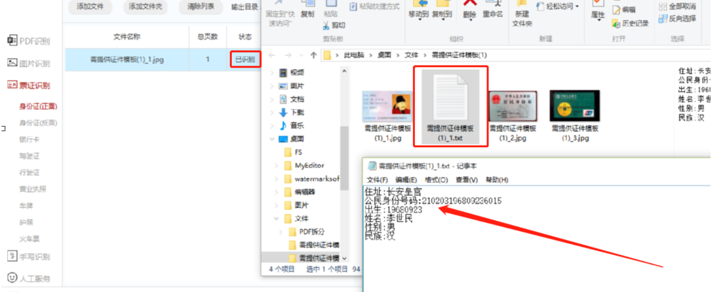 5.最后等到识别完成之后会自动打开识别结果储存的文件夹,我们双击识别结果保存的TXT文件就可以打开文件查看识别的信息了。