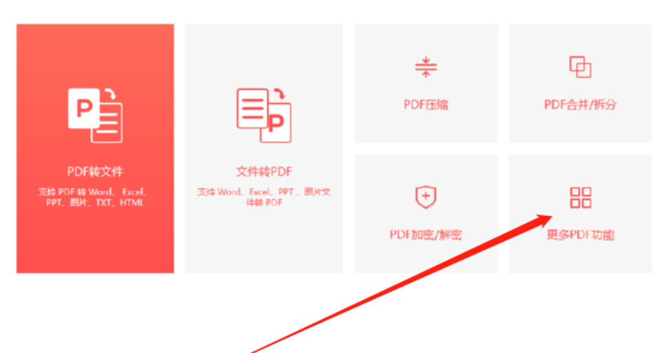 1.首先第一步我们打开软件之后,在界面中找到更多PDF功能这个模块,然后点击进入到更多PDF功能界面中。