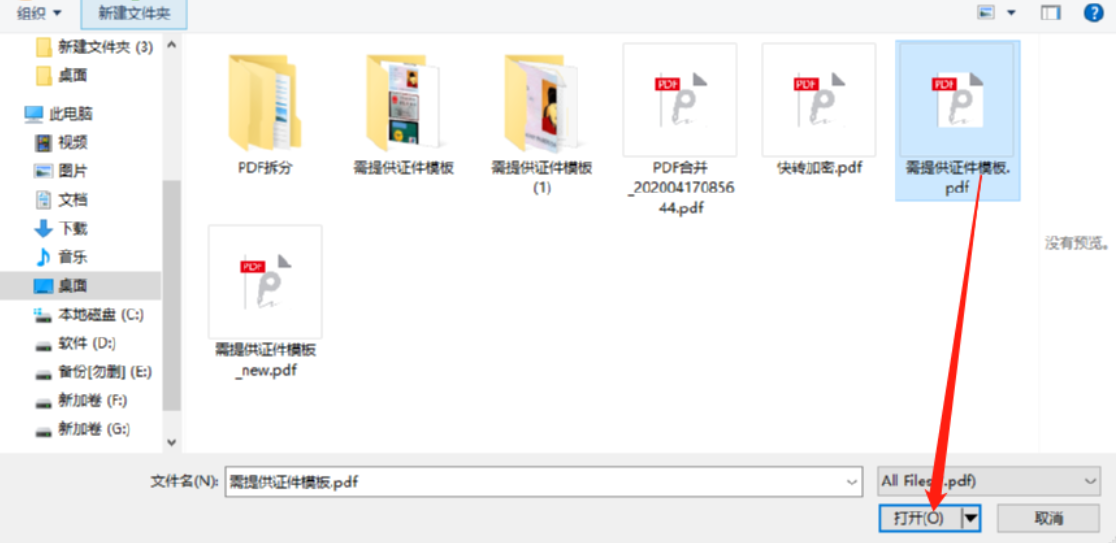 3.点击添加文件按钮之后下一步在出现的选择文件界面中,我们选中目标PDF文件之后点击下方的打开按钮即可。