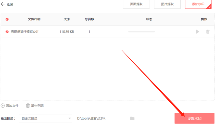 5.设置好输出文件夹之后我们就可以点击界面右下角的设置水印这个功能按钮了,点击即可进入到设置水印的功能界面。