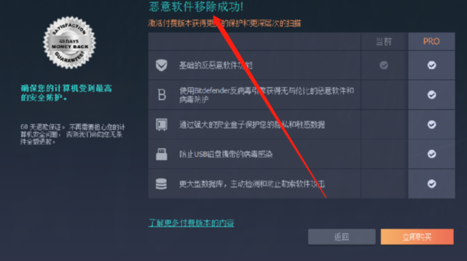 5.点击开始移除之后我们会看到一个软件的处理进度,等到移除完成之后就会提示我们恶意软件移除成功的界面了。