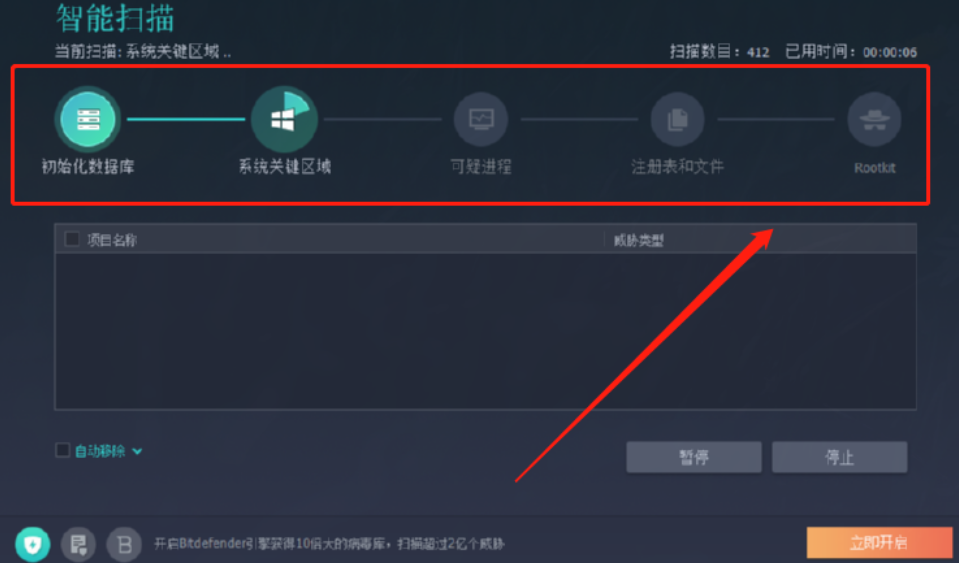 2.开始扫描之后我们在界面中就可以看到软件的扫描操作有哪些模块了,然后我们只需要等待软件帮我们扫描完成即可。