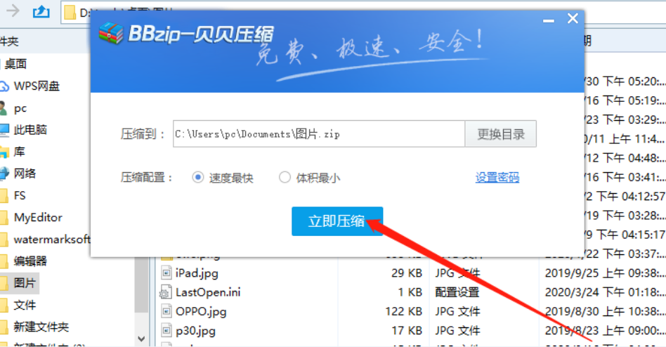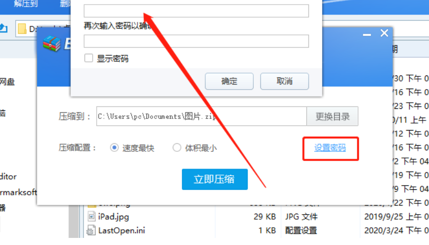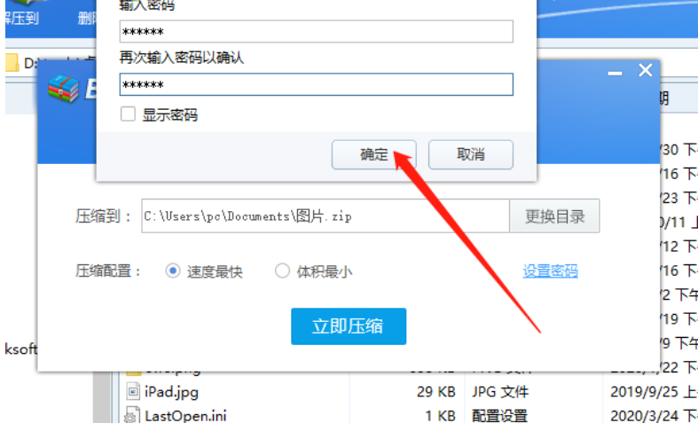 6.点击确定按钮密码就成功设置完成了,然后我们回到压缩任务界面,点击立即压缩这个功能按钮即可开始加密压缩文件夹。