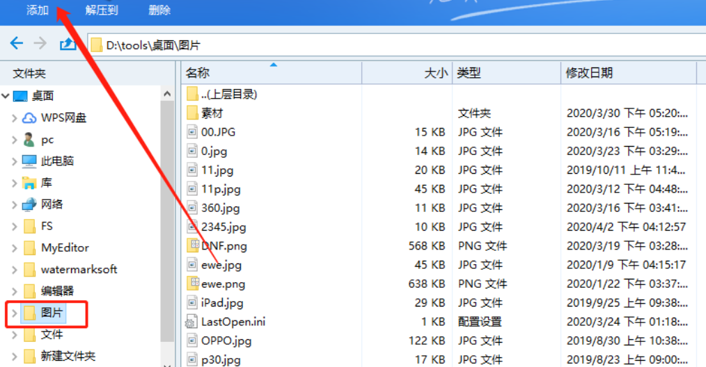 1.首先第一步我们打开贝贝压缩软件之后在界面左边的文件列表中找到想要加密压缩的文件夹,选中之后点击上方的添加这个功能按钮。
