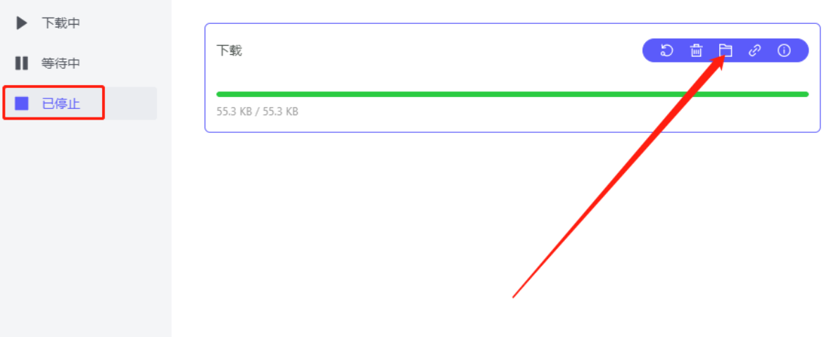 5.点击提交下载任务之后会自动开始下载操作,等到下载完成之后在已停止模块中就可以看到下载好的网页资源了,然后我们点击它后面的文件夹图标即可查看下载的资源文件。
