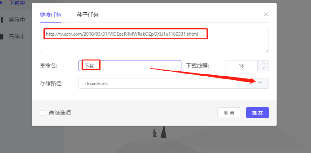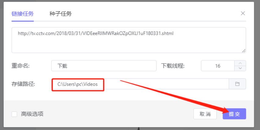 4.选择好保存下载资源的路径之后,下一步我们回到创建任务的界面中,然后点击界面中的提交按钮就可以提交这个下载任务了。