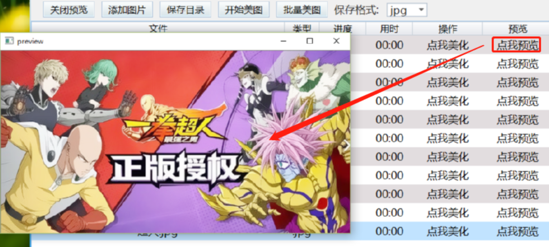 4.我们根据个人的需求调节好这些美化文件的参数之后,点击后面的预览按钮可以预览美化图片的效果,然后可以根据美化效果来调整这些美化参数。
