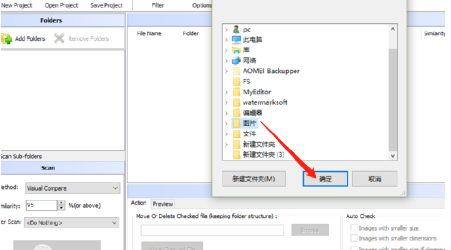 2.点击添加文件夹之后我们在出现的界面中选择想要扫描重复图片的文件夹,选中之后点击确定按钮即可。
