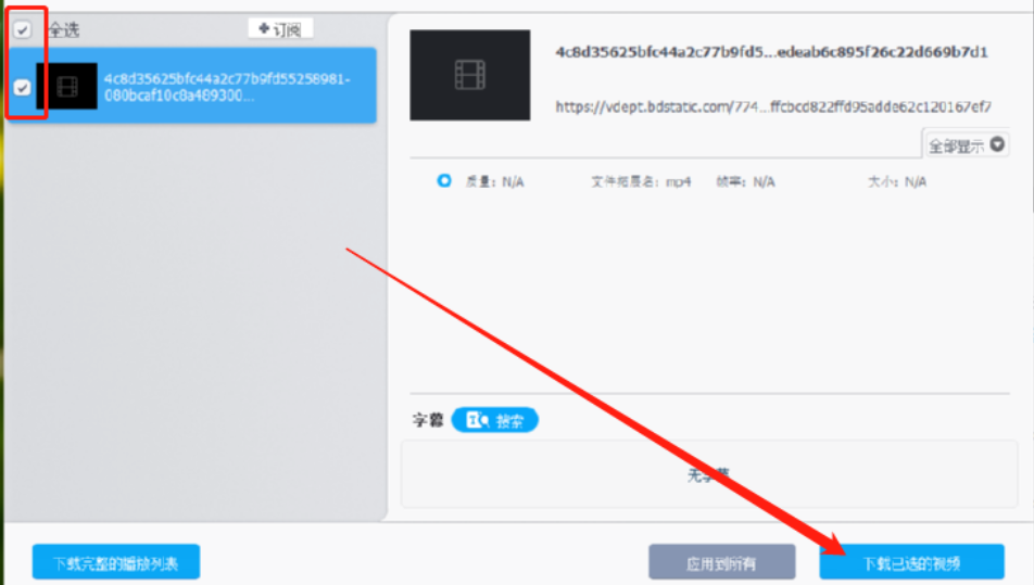 4.点击分析按钮之后软件就会自动识别该链接中的视频文件,识别出来之后我们勾选这个视频文件点击右下角的下载已选的视频这个功能选项。