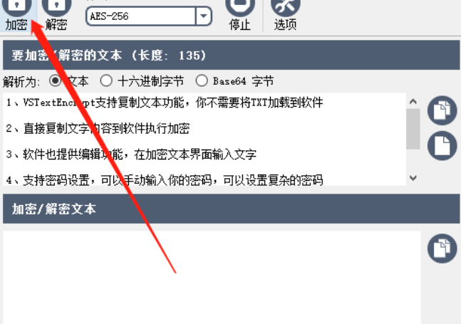 4.设置完成之后下一步我们就可以点击主界面左上方的加密这个功能按钮开始加密文本内容了。