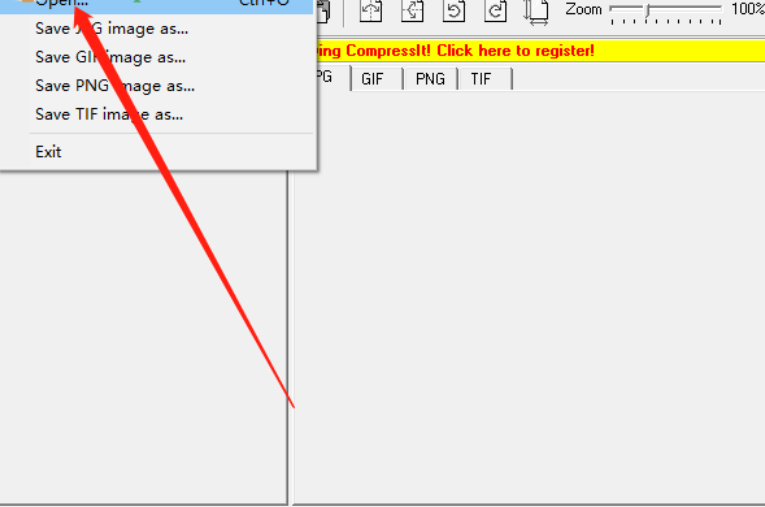1.首先第一步我们打开软件之后点击界面左上角的Open这个打开按钮,点击之后即可选择要压缩的图片文件。