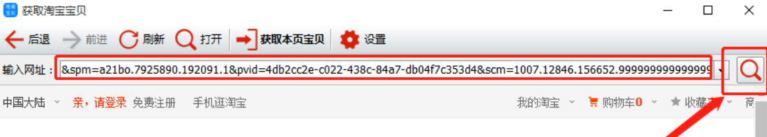3.将要下载的淘宝宝贝链接复制进来之后,我们点击输出网址栏最后面的这个搜索图标,点击搜索图标之后软件就会开始识别这个网址中的内容。