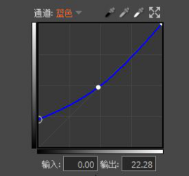 到蓝色通道,同样中间点一下,阴影提高,至于高光部份亦可稍为拉多一点,见下图: