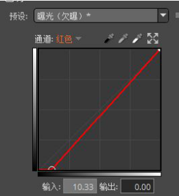 在颜色(Color)的曲线,调整红色通道,在正中间点一下固定,然后把阴影的部份向右拉 (如下图),这样阴影的色彩就会减少红色,即是变得更青色了,而高光位置就保持不变 (因为中间的一点)。