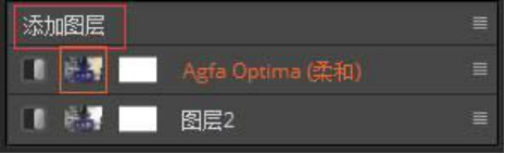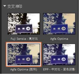 二,在这张图片中,为了增加照片的层次感,同时不破坏原照片,我们需要添加图层,借助到胶片滤镜。这里小编选择的使左边预设中的交叉冲印-Agfa Optima (柔和)。