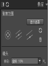 然后对图片进行聚焦设置。点击右侧工具栏的“景深”,预设我们选择“运动”下的“旋转10%”,并调整好合适的聚焦范围大小和位置。