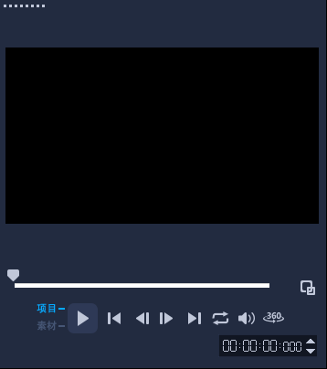 3, 预览窗口:它可以预览你的素材和项目进行预览而预览窗口的下方是一个时间进度条,时间进度条的正下方是一个操作台(包括播放,前一帧后一帧,循环播放等等)还有时间轴显示我们预览的时间。